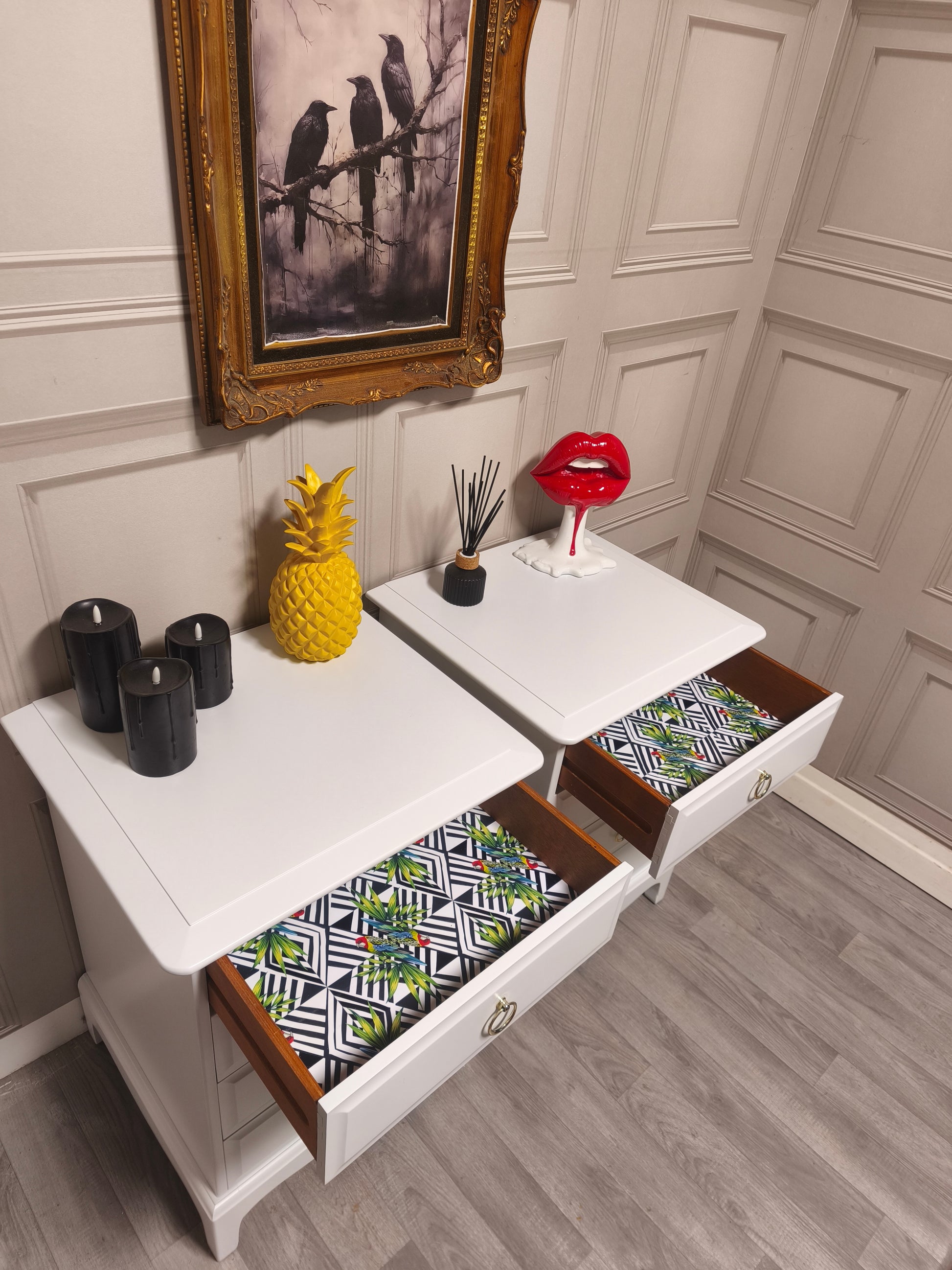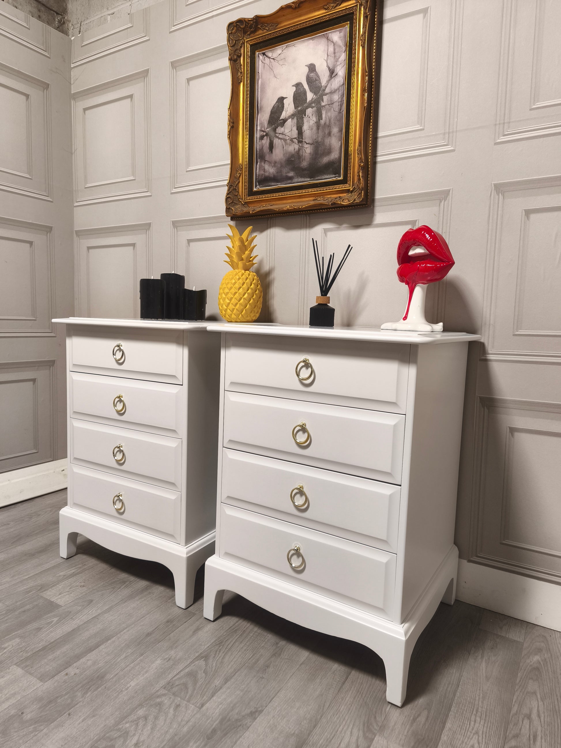 Beautiful professionally sprayed stag Minstrel pair of 4 drawer bedsides. Comes with original Stag handles or a handle of your choice up go the value of £20.